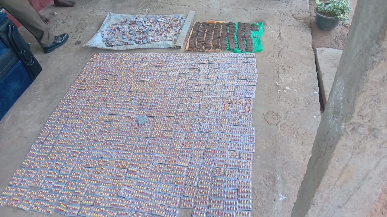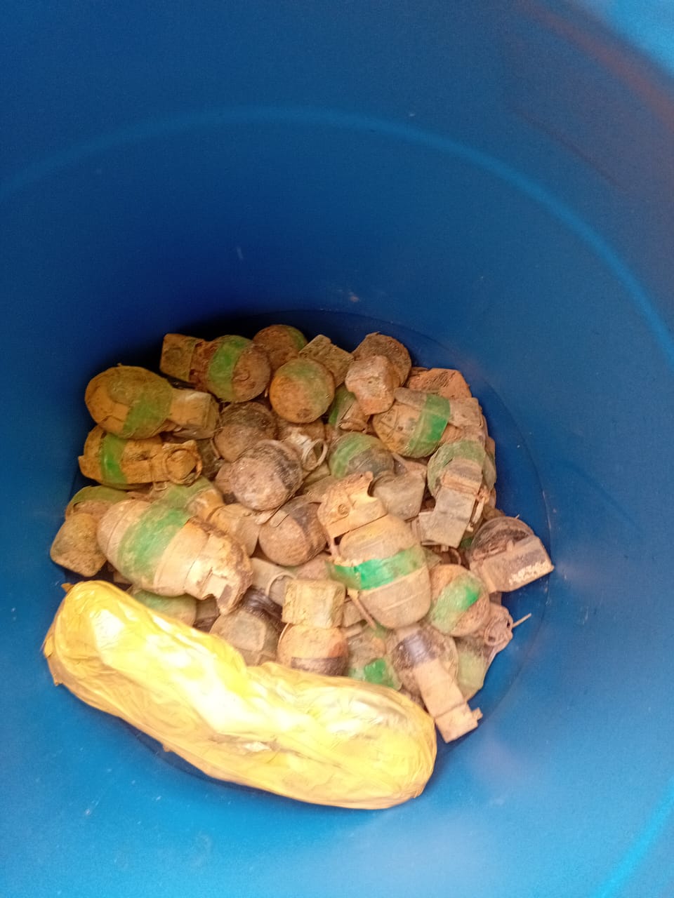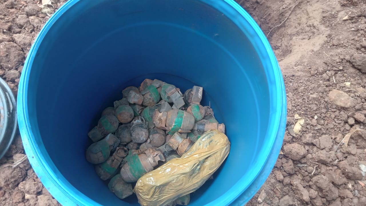 இதன்போது நேரியகுளத்தில் வீடு ஒன்றின் அருகாமையில் பிளாஸ்டிக் பரல் ஒன்றினுள் 86 கைக்குண்டுகள், ரி- 56 ரக துப்பாக்கிக்கான ரவைகள், கைத்துப்பாக்கிக்கான மூன்று ரவைகள், 5600 போதை மாத்திரைகள், 10 கிராம் ஐஸ் போதைப்பொருள் என்பன நிலத்தின் கீழ் பதுக்கி வைக்கப்பட்டிருந்த நிலையில் மீட்கப்பட்டன.