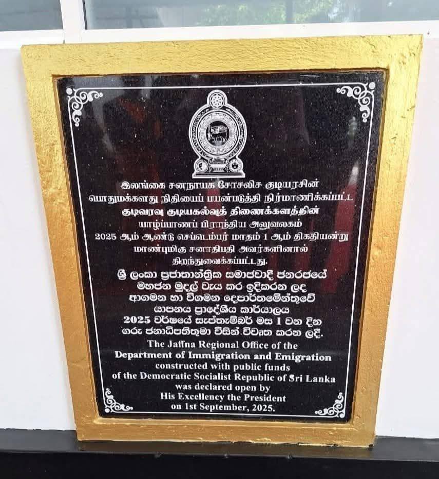 அதன்பின்னர், யாழ்ப்பாண மாவட்டச் செயலக வளாகத்தில் குடிவரவு மற்றும் குடியகல்வுத் திணைக்களத்தின் பிராந்திய அலுவலகம் ஜனாதிபதியினால் திறந்து வைக்கப்பட்டது. இதன் போது,மூன்று பேருக்கு ஜனாதிபதியினால் சம்பிரதாயபூர்வமாக கடவுச்சீட்டுகள் வழங்கி வைக்கப்பட்டதுடன், ஒருவருடைய கடவுச்சீட்டுக்கான விண்ணப்பமும் ஏற்றுக்கொள்ளப்பட்டது.